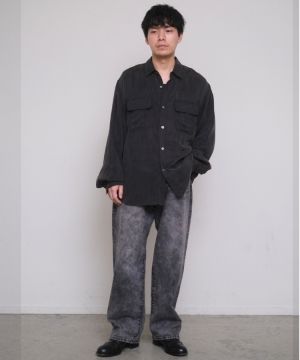 ブラスト加工、ヒゲ加工、バイオ加工、ケミカルウォッシュを施し、オーバーダイ加工で赤みを加えました。