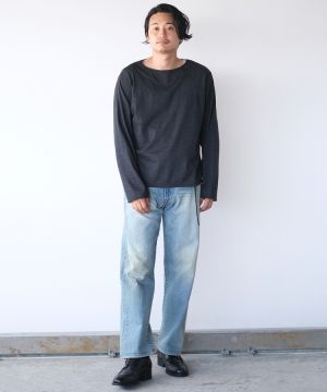 幼く見えないよう袖は程よく長さを残し、ネックはリブなしのボートネック型に仕上げています。